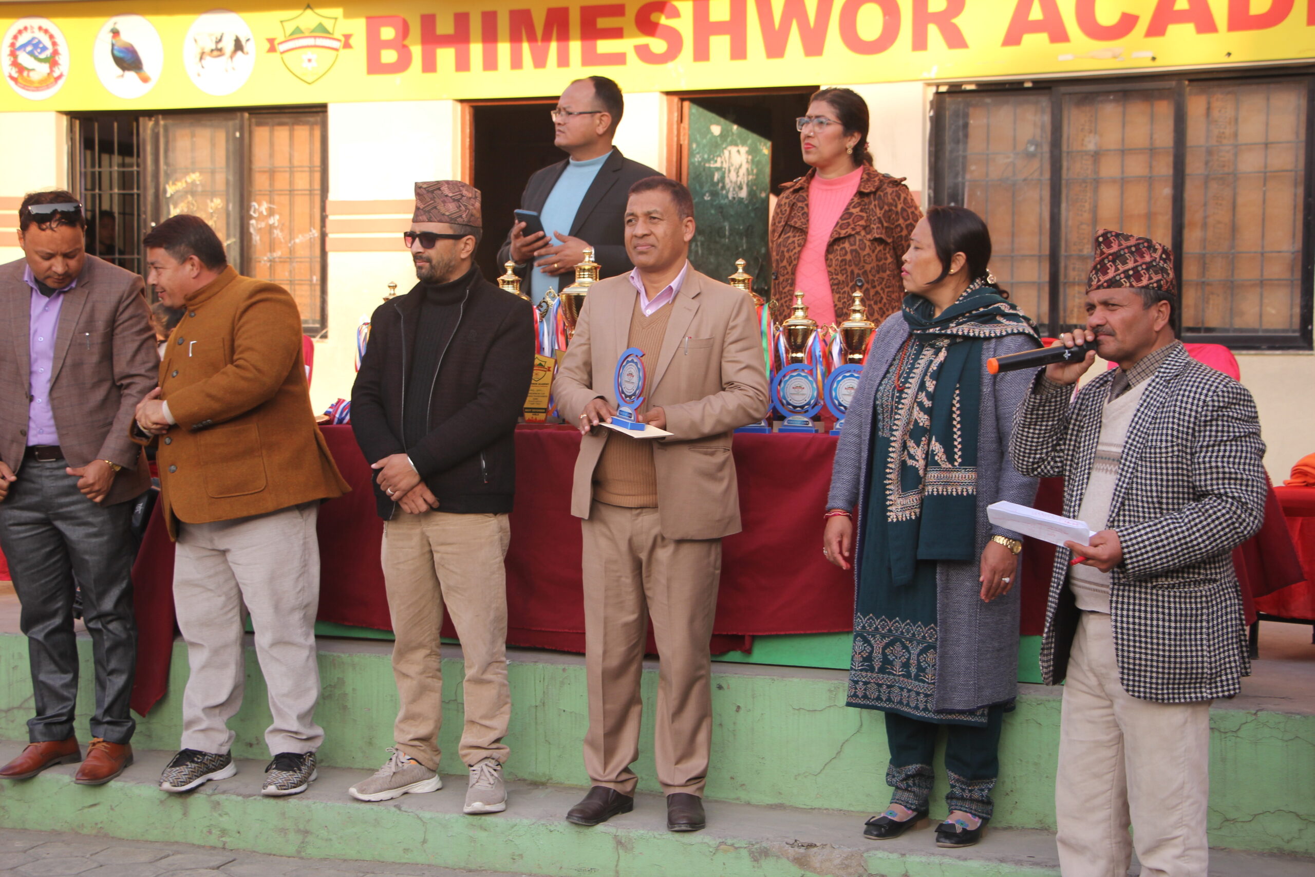 काठमाडौँ – भिमेश्वर कप कबड्डी प्रतियोगिताको उपाधि आयोजक भिमेश्वर स्कुलले जितेको छ । काठमाडौँको गोठाटारमा रहेको भिमेश्वर एकेडेमीको आयोजनामा सोमबारबाट सुरु भएको अन्तर विद्यालय भिमेश्वर कप कबड्डी प्रतियोगिताको चौथो संस्करणको उपाधी छात्र र छात्रा दुबैतर्फ भिमेश्वर एकेडेमीले नै विजय प्राप्त गरेको हो । यसैगरी छात्रातर्फ फष्ट रनर अप अर्थात द्वितीय कोपेश कोटदेवी स्कुल भएको छ भने छात्र तर्फ रूवी भ्याली स्कुल दोस्रो भएको छ । यस्तै छात्रातर्फ तृतीय बेष्ट ग्रुप भिजन स्कुल र रूवी भ्याली स्कुल भएका छन् भने छात्रतर्फ बेष्ट ग्रुप भिजन स्कुल र गणेश हिमाल स्कुलले तृतीय स्थान हात पार्न सफल भएका छन् । प्रथम र द्वितीय हुने छात्र तथा छात्रातर्फका विद्यालयले क्रमश: नगद रू पाँच हजार, तीन हजार सहित, ट्रफि, मेडल र प्रमाण पत्र प्राप्त गरेका छन भने तृतीय हने विद्यालयले ट्रफि, मेडल र प्रमाणपत्र प्राप्त गरेका छन् । यस्तै उपत्यकाव्यापी प्रतियोगितामा १६ विद्यालयका छात्र र छात्रा तर्फका टीम सहभागी भएका भएकाे आयोजक विद्यालयका भिमेश्वरका प्रिन्सिपल अमृत खड्काले जानकारी दिनुभयाे ।