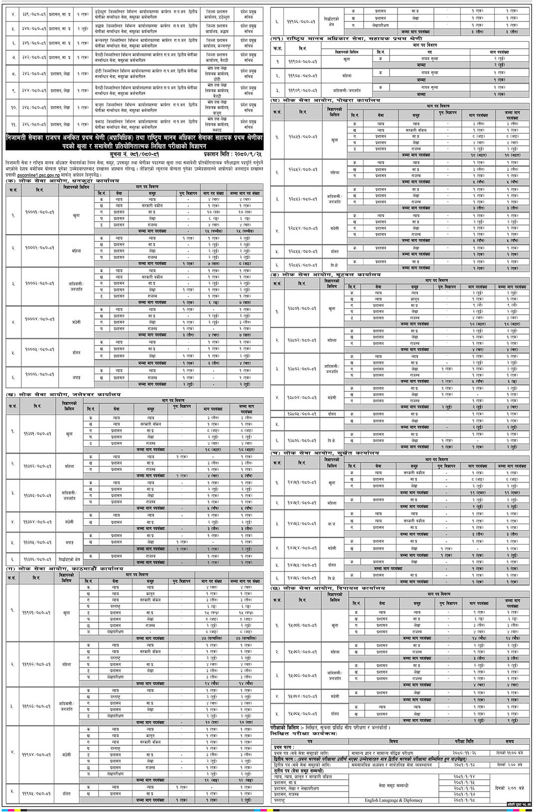 काठमाडौं, २५ पुस । लोकसेवा आयोगले विभिन्न रिक्त पदपूर्तिका आगि आवेदन आह्वान गरेको छ । निजामती सेवाका राजपत्र अनंकित प्रथम श्रेणी (अप्राविधिक) तथा राष्ट्रिय मानव अधिकार सेवाका सहायक प्रथम श्रेणीका पदका लागि आयोगले दरखास्त माग गरेको हो ।