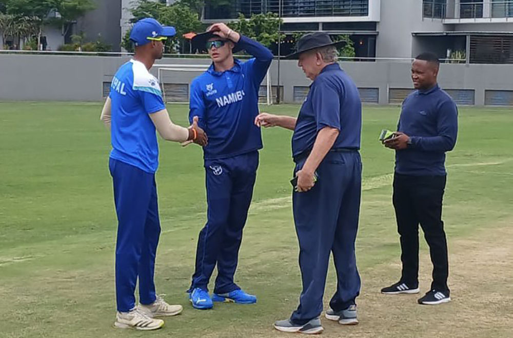 काठमाडौँ – आइसिसी यू- १९ विश्वकप खेल्न दक्षिण अफ्रिकामा रहेको नेपाली टिमले अनौपचारिक वार्मअप खेलमा नामिबियालाई ६ रनले पराजित गरेको छ । बर्षाले प्रभावित हुदा ३०-३० ओभर खेलाइएको यो खेलमा नेपालले दिएको १४२ रनको लक्ष्य पछाएको नामिबिया २९.५ ओभरमा अल आउट हुदै १३५ रन बनाएको थियो ।