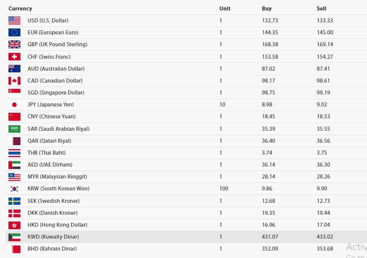 साथै, कुवेती दिनार एकको खरिददर ४३१ रूपैयाँ ०७ पैसा र बिक्रीदर ४३३ रूपैयाँ ०२ पैसा र बहराइन दिनार एकको खरिददर ३५२ रूपैयाँ ०९ पैसा र बिक्रीदर ३५३ रूपैयाँ ६८ पैसा तोकिएको राष्ट्र बैंकले जनाएको छ ।
