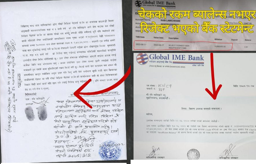 यहाँनिर सबैले बुझ्नु पर्ने कुरा के छ भने, मेरो खातामा रकम जम्मा भएको थिएन। अर्थात् चेक क्लियर भएन किनभने जीबी राईको खातामा जति रकमको चेक काटियो, त्यति पुग्ने पैसा नै रहेनछ।