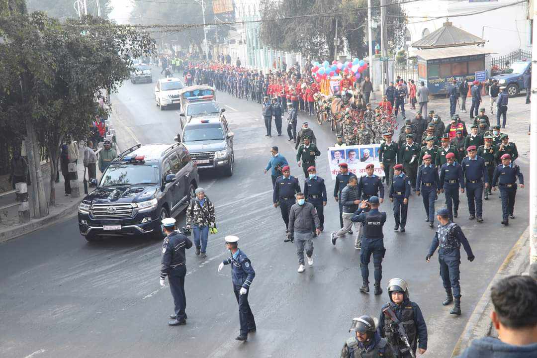 काठमाडौं, १६ माघ । देशभर मंगलबार शहीद दिवस मनाइँदै छ । यसैक्रममा शहीद दिवसको अवसरमा मंगलबार बिहान काठमाडौंमा प्रभातफेरि निकालिएको थियो ।