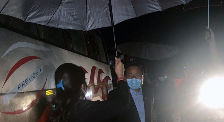 आइतबार साँझ पानी परिरहेको समयमा अलपत्र परेका मजदुरलाई बिदा गर्न मन्त्री पुन पनि जगाती पुगेका थिए ।