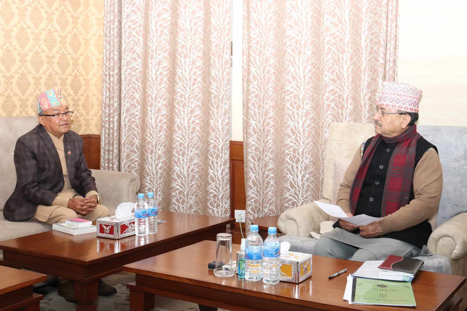 प्रमुख निर्वाचन आयुक्त थपलियाले आज सिंहदरबारस्थित रक्षामन्त्रालयमा उपप्रधानमन्त्री खड्कासँग हालै सम्पन्न राष्ट्रिय सभा निर्वाचन र अब गर्नुपर्ने उपनिर्वाचनका विषयमा छलफल गरेका हुन् । प्रतिनिधिसभा र प्रदेशसभा सदस्य र रक्त स्थानिय तहको उपनिर्वाचनका लागि आयोगले सरकारसँग परामर्श गर्दै आएको छ ।