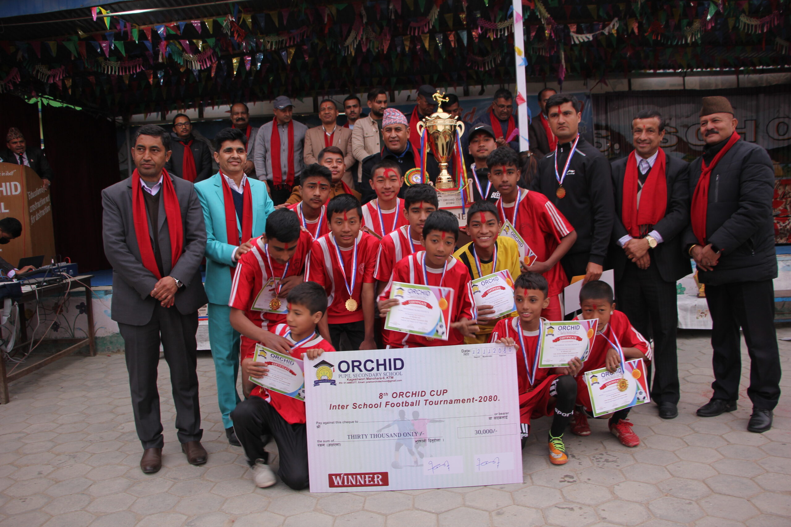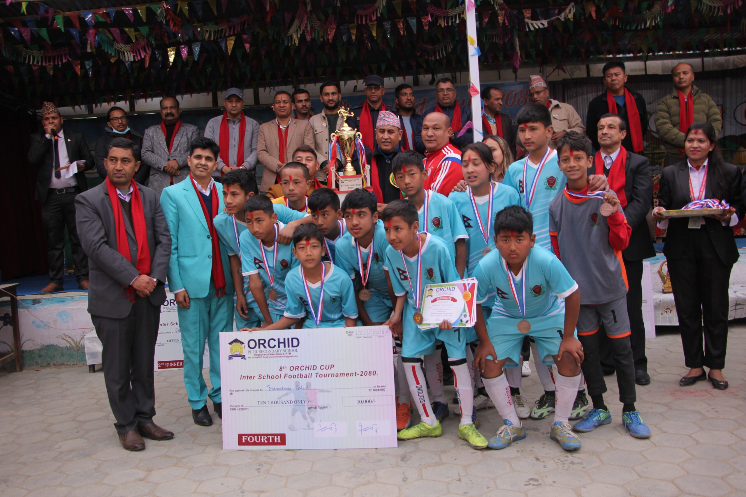 काठमाडाैं – यहि फागुन ४ गतेदेखि सुरु भएको आठौँ अर्किड कप २०८० सम्पन्न भएको छ । शनिबार भएको फाइनल खेलमा गेटवे एकेडेमीलाई पराजित गर्दै माउण्ट सेव स्कुल अर्किड कपको विजेता बनेको छ । यसैगरी द्धितीय गेटवे एकेडेमी भएको छ भने तृतीय गोल्डेन बड स्कुल भएको छ । यस्तै प्रतियोगिताको चौथौ स्थान हासिल गर्न सफल ब्रह्मकुञ्ज स्कुल रहेको छ ।