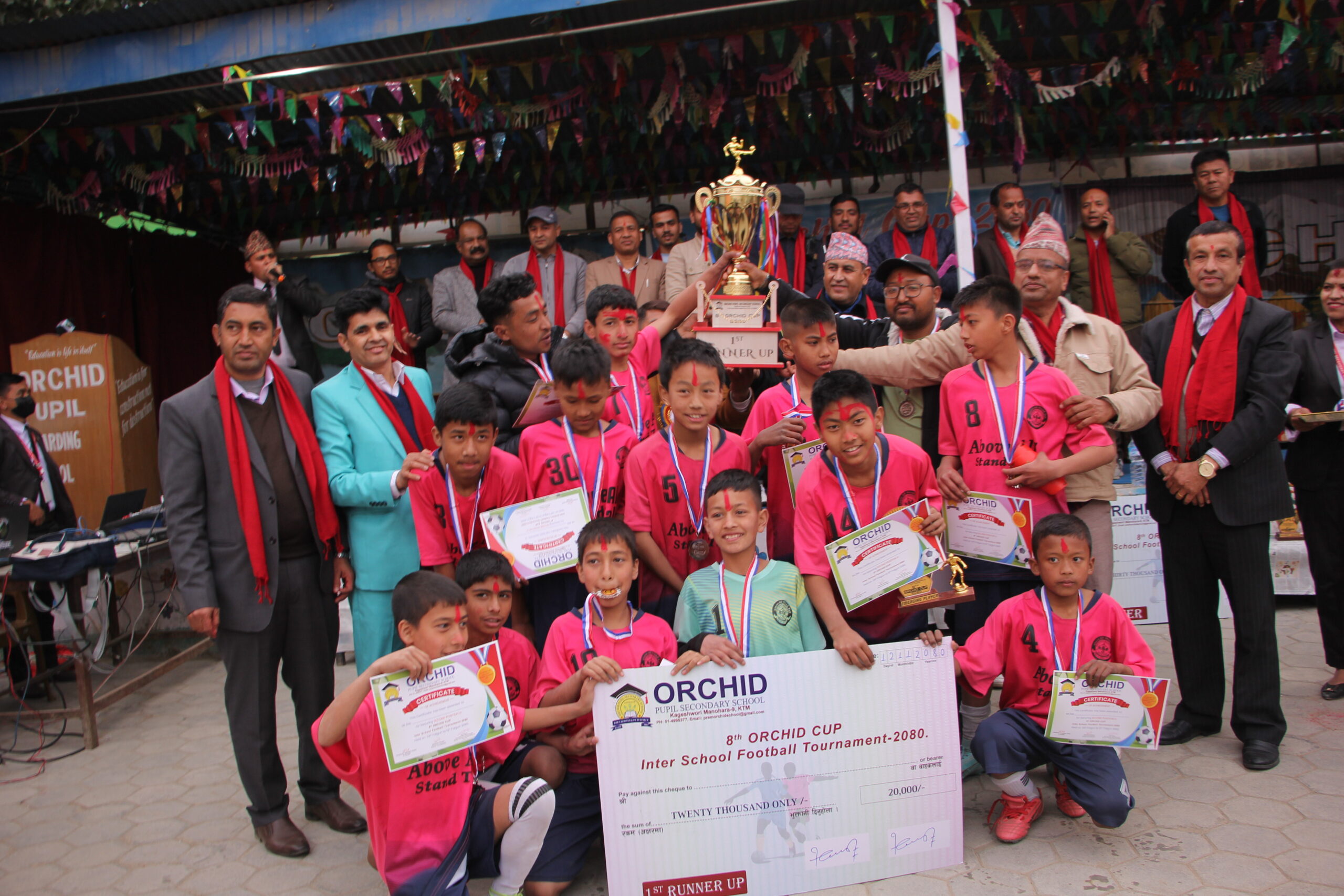 शनिवार समापन समारोहको सभापतित्व विद्यालयका संस्थापक निर्देशक प्रेमकुमार भुजेलले गर्नुभएको थियो भने विशेष अतिथिको रुपमा नेशनल प्याब्सन केन्द्रीय उपाध्यक्ष शम्भु अधिकारी, नेशनल प्याब्सन केन्द्रीय सचिव सचिव विष्णु पराजुली, नेशनल प्याब्सन जिल्ला अध्यक्ष अमृत कुमार खड्का, नेशनल प्याब्सन काठमाडौँ जिल्ला उपाध्यक्ष टंक थापा, नेशनल प्याब्सन काठमाडौं महानगर समिति सचिव तथा फिजम सचिव सुनिल खत्री लगायत विभिन्न विद्यालयका संस्थापक, प्रिन्सिपल लगायत शिक्षक शिक्षिका, खेल प्रशिक्षक लगायतको उपस्थिति रहेको थियो । कार्यक्रम सञ्चालन तथा उद्घोषकको भूमिका विद्यालयका संयोजक नरेन्द्र प्रसाद पाण्डेयले गर्नुभएको थियो ।