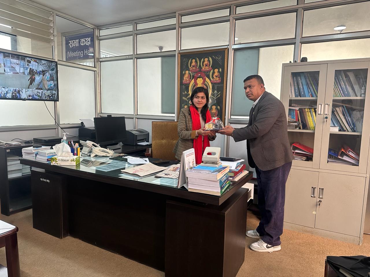 हालै भोटाहिटी क्षेत्रमा अनुगमन तिब्र पारेको बिषयमा जानकारी लिन अध्यक्ष सहित नेपाल व्यापार संघका पदाधिकारी भेट्न गएका थियो । भेटका क्रममा मायाको चिनो आदानप्रदान गरि बिदाई भएका छन् ।