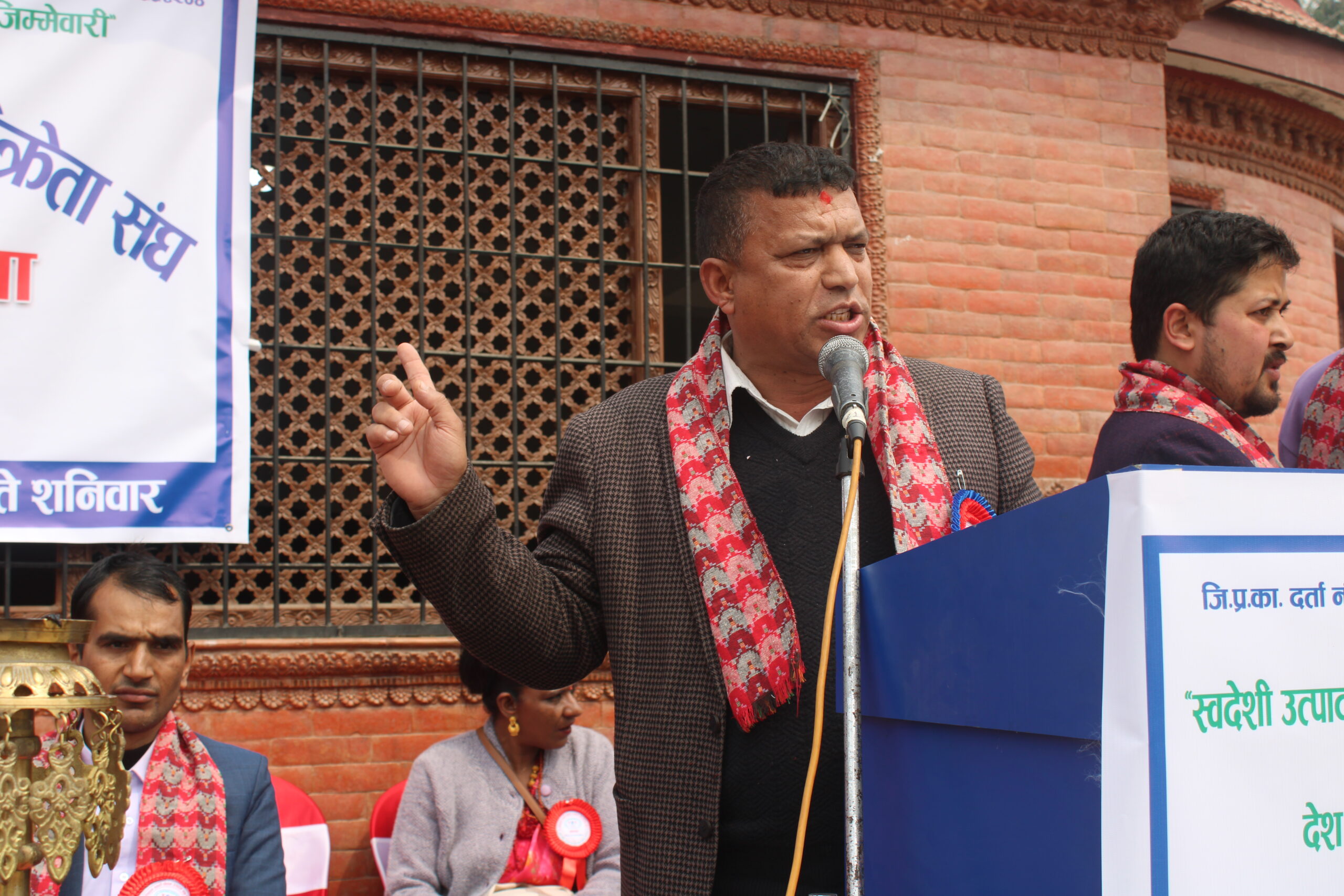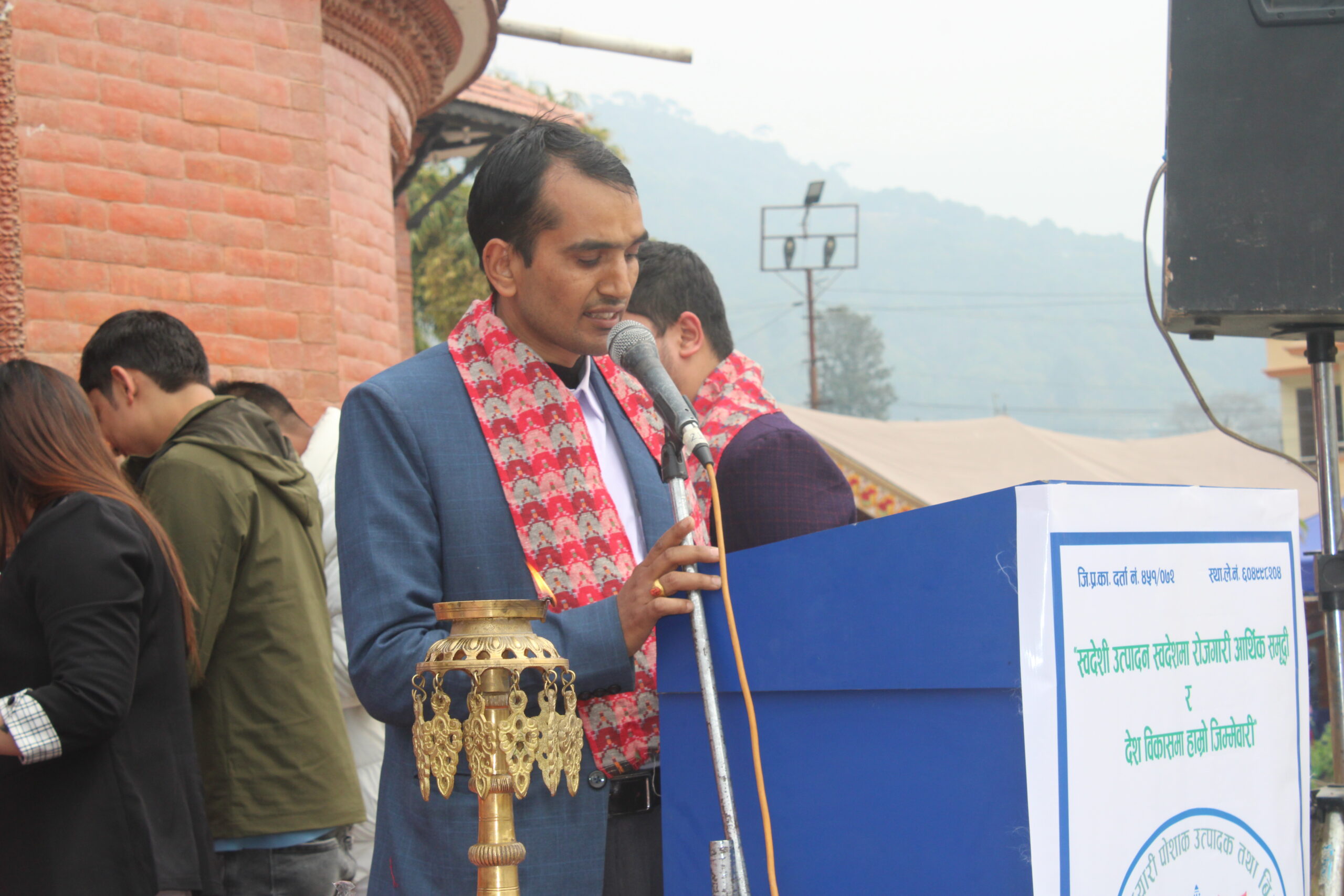 कार्यक्रममा बरिष्ठ उपाध्यक्ष विष्णुप्रसाद गौतमले स्वागत मन्तव्य राखेका थिए । उनले ‘स्वदेशी उत्पादन स्वदेशमा रोजगारी, आर्थिक समृद्धि र देश विकासमा हाम्रो जिम्मेवारी’ भन्ने मुल नाराका साथ संघको स्थपाना भएको बताएका थिए । उनले युवाहरु दिन प्रतिदिन विदेशिएको अवस्थामा नेपालमै रहेर व्यापार व्यवसाय गरि राष्ट्रलाई कर तिरेर आफ्नो जिम्मेवारी पुरा गरेको भन्दै सम्पूर्ण व्यवसायीहरुलाई धन्यवाद दिएका थिए ।