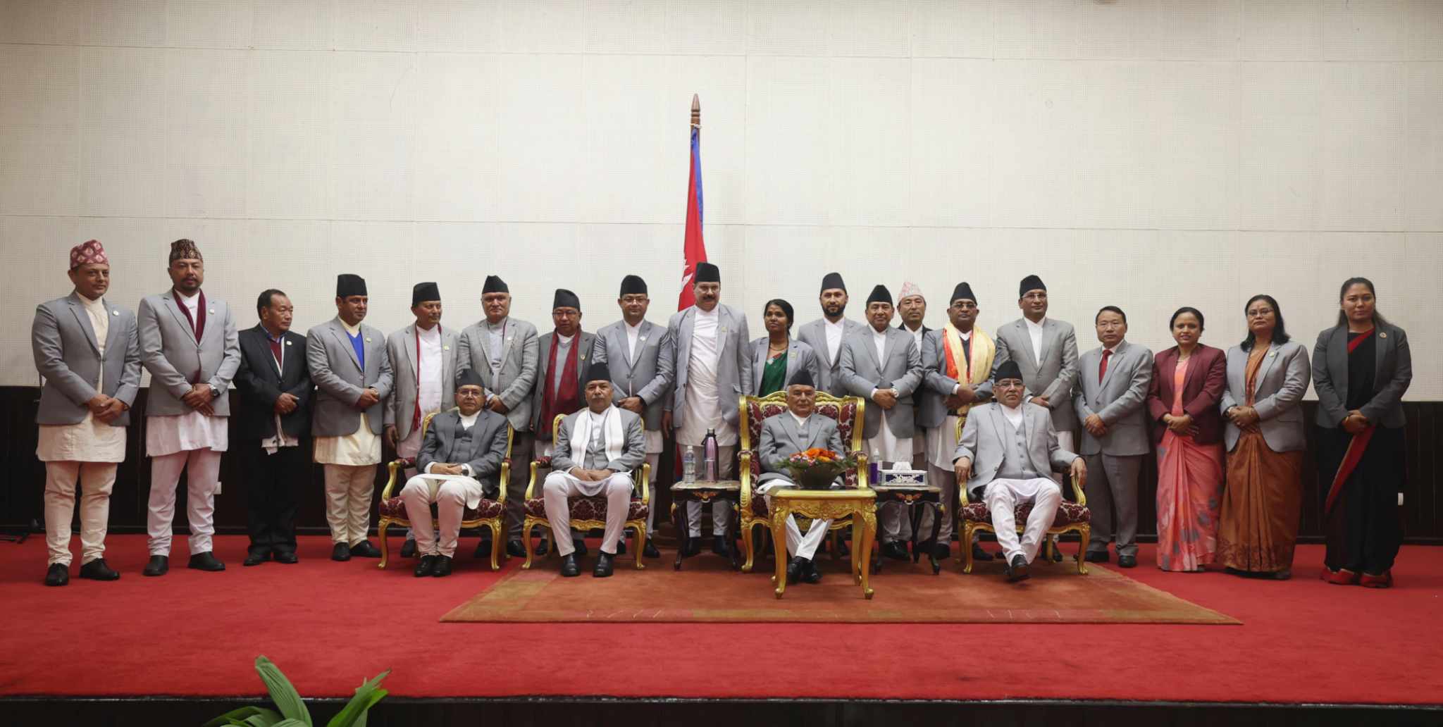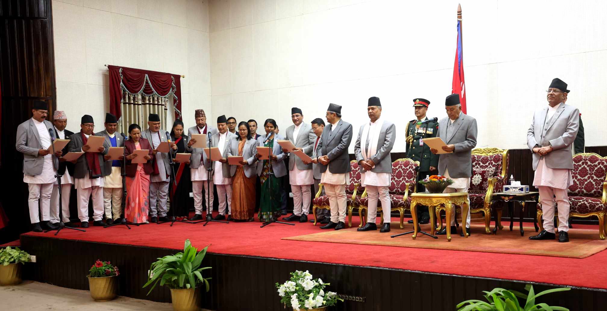 काठमाडौं – सरकारका नवनियुक्त मन्त्रीले पद तथा गोपनियताको शपथ लिएका छन्। शीतल निवासमा आयोजित विशेष समारोहमा राष्ट्रपति रामचन्द्र पौडेलले उनीहरूलाई शपथ ग्रहण गराएका हुन्।