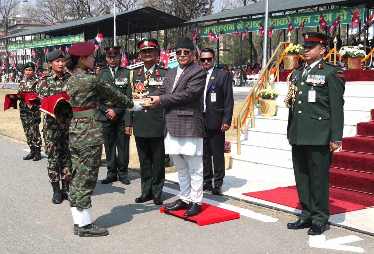 “दीक्षित युवाले राष्ट्रलाई आवश्यक परेको समयमा निःस्वार्थ सेवाभावबाट समर्पित भई एक कर्मठ नेपाली नागरिकका रूपमा महत्त्वपूर्ण भूमिका निर्वाह गर्नुहुनेछ,” प्रधानमन्त्री प्रचण्डले भने, “तालिमको दौरान तपाईहरूले हासिल गरेका ज्ञानले उक्त कार्यका लागि अभिप्रेरित गर्नेछ भन्ने विश्वास लिएको छु ।”