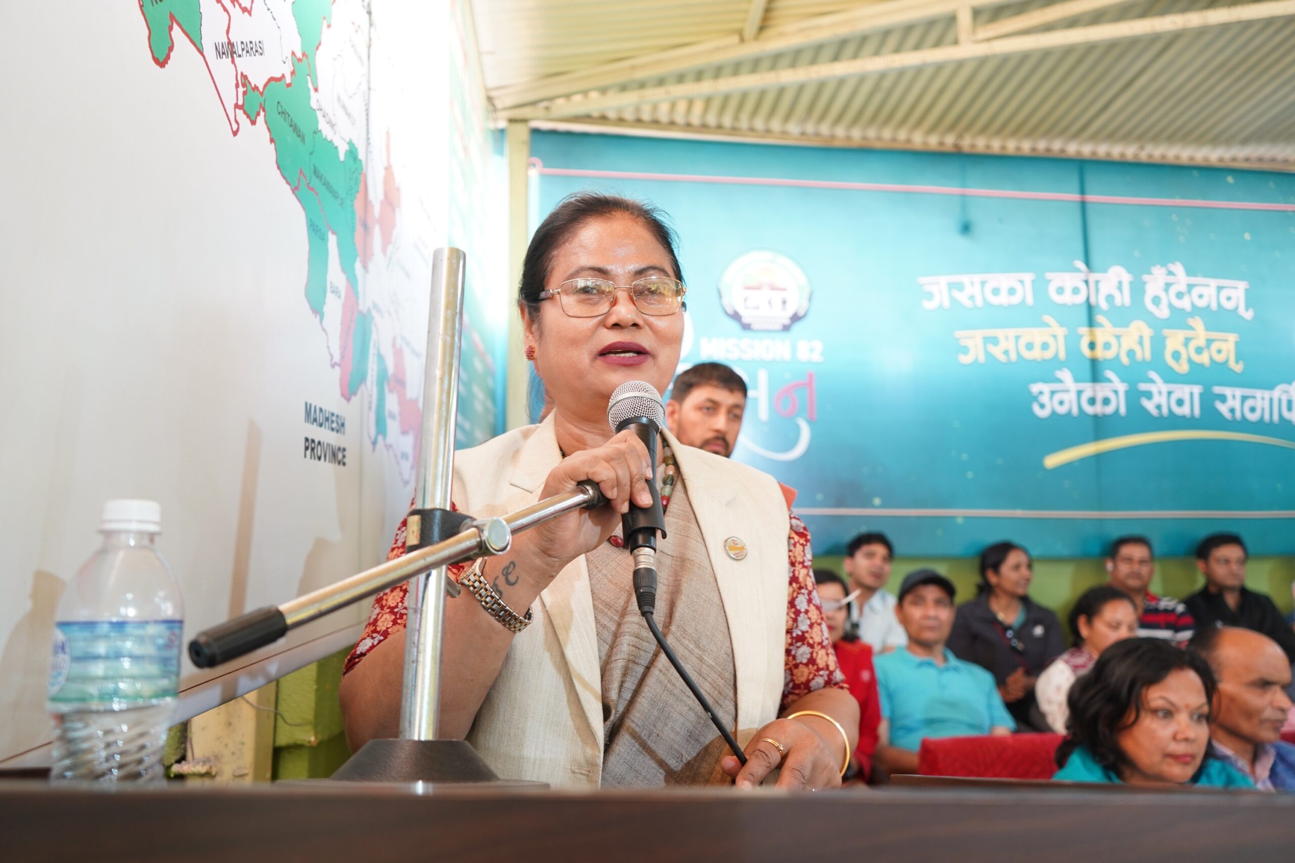 तर कानूनमा अझै पनि केही कमी रहेको भन्दै उहाँले ती कमीलाई पुरा गर्दै सरकार अगाडि बढ्ने प्रतिबद्धता व्यक्त गर्नुभयो । ‘तपाईँहरूका निम्ति बनाइएका ऐन, कानूनमा भएका व्यवस्थालाई तल तलसम्म कार्यान्वयन तहमा ल्याउनका लागि अझै पनि केही कमी छन् । ती कमीहरूलाई पनि पुरा गर्न अथवा सेवाग्राहीसम्म सरकारको सेवा पुर्याउनका लागि यहाँहरू जस्ता व्यक्तिहरूलाई ठाउँ दिएर काम अगाडि बढाइनेछ’, मन्त्री चौधरीले भन्नुभयो ।