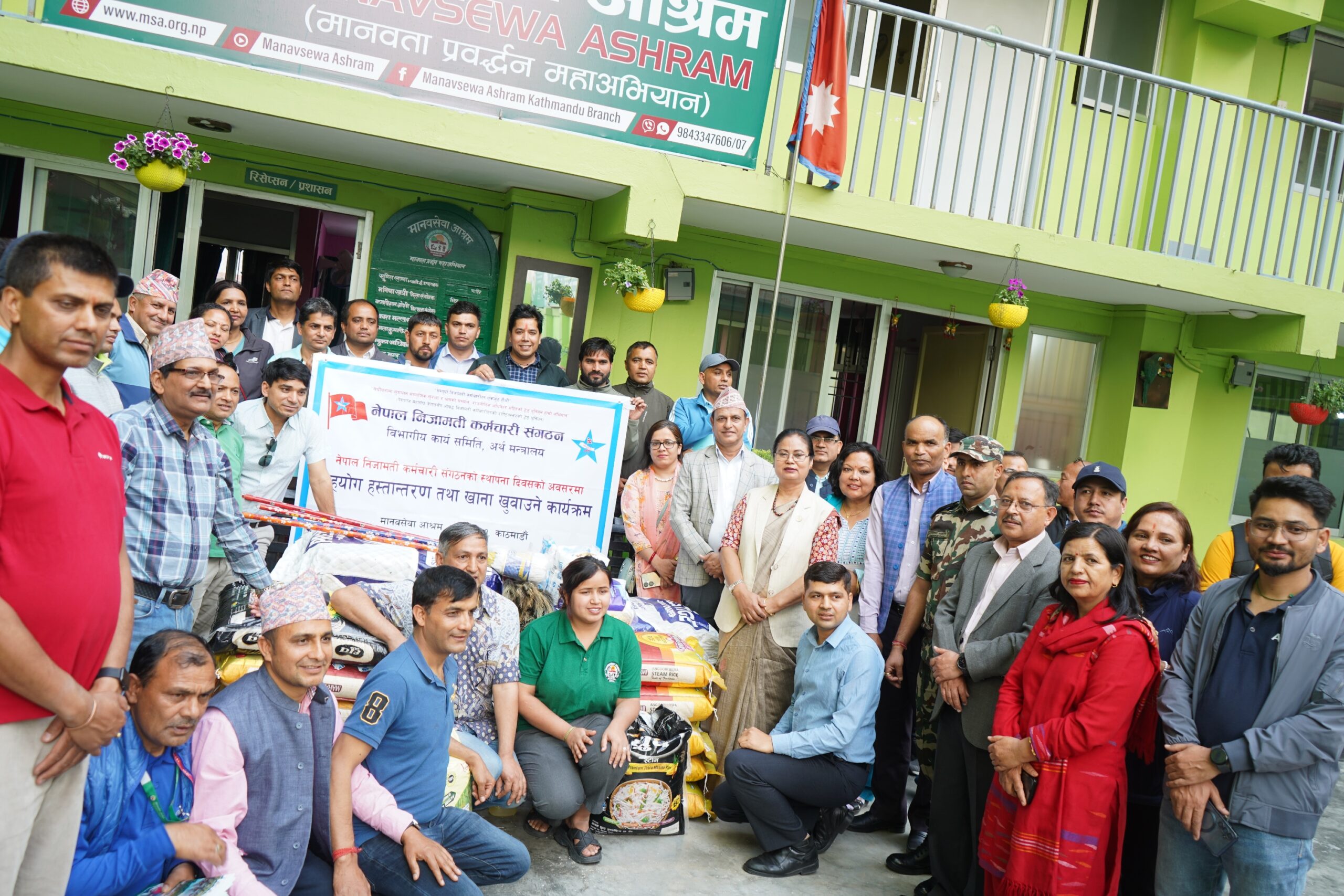 त्यस अवसरमा नेपाल निजामती कर्मचारी संगठन अर्थ विभागीय कार्य समितिको तर्फबाट मानव सेवा आश्रममा रहेका २२६ जना व्यक्तिहरूका लागि एक छाक खाना बराबर लाग्ने २० हजार रुपैयाँ नगद र एक लाख तीन हजार नौ सय १० रुपैयाँ बराबरको चामल, दाल, नुन, तेल, चप्पल, डाइपर लगायतका सामग्री मन्त्री चौधरीले हस्तान्तरण गर्नुभएको थियो ।