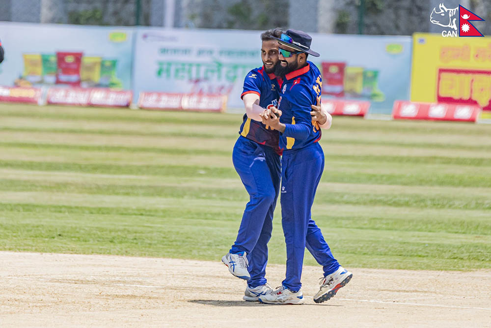 त्यसैगरी नेपाली बलर सागर ढकाल र सोमपाल कामीले ३-३ विकेट लिएका थिए भने अविनाश बोहोराले एक विकेट लिएका थिए ।