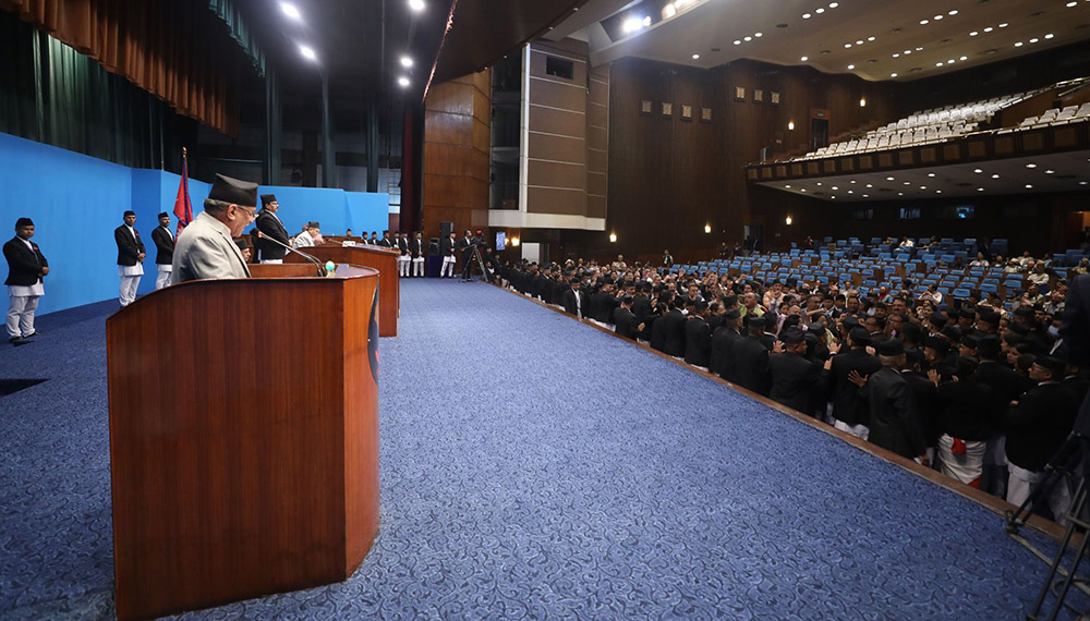 प्रतिपक्षी दल नेपाली कांग्रेसको नाराबाजीका बिचमा विश्वासको मत लिइएको थियो ।