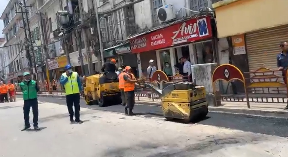 सडक बिभागले सोमबार बिहानदेखि महानगरले बनाउन थालेको फुटपाथलाई पिच गर्न शुरु गरेको थियो । सडक बिभागले पिच शुरु गरेपछि महानगर प्रहरी सो क्षेत्रमा गएर काम रोक्न प्रयास गरेको छ । अहिले केहि स्थानीयहरु महानगरको योजनाको विरुद्ध देखिएका छन् भने महानगरले काम रोक्न प्रयास गरिरहेको छ ।