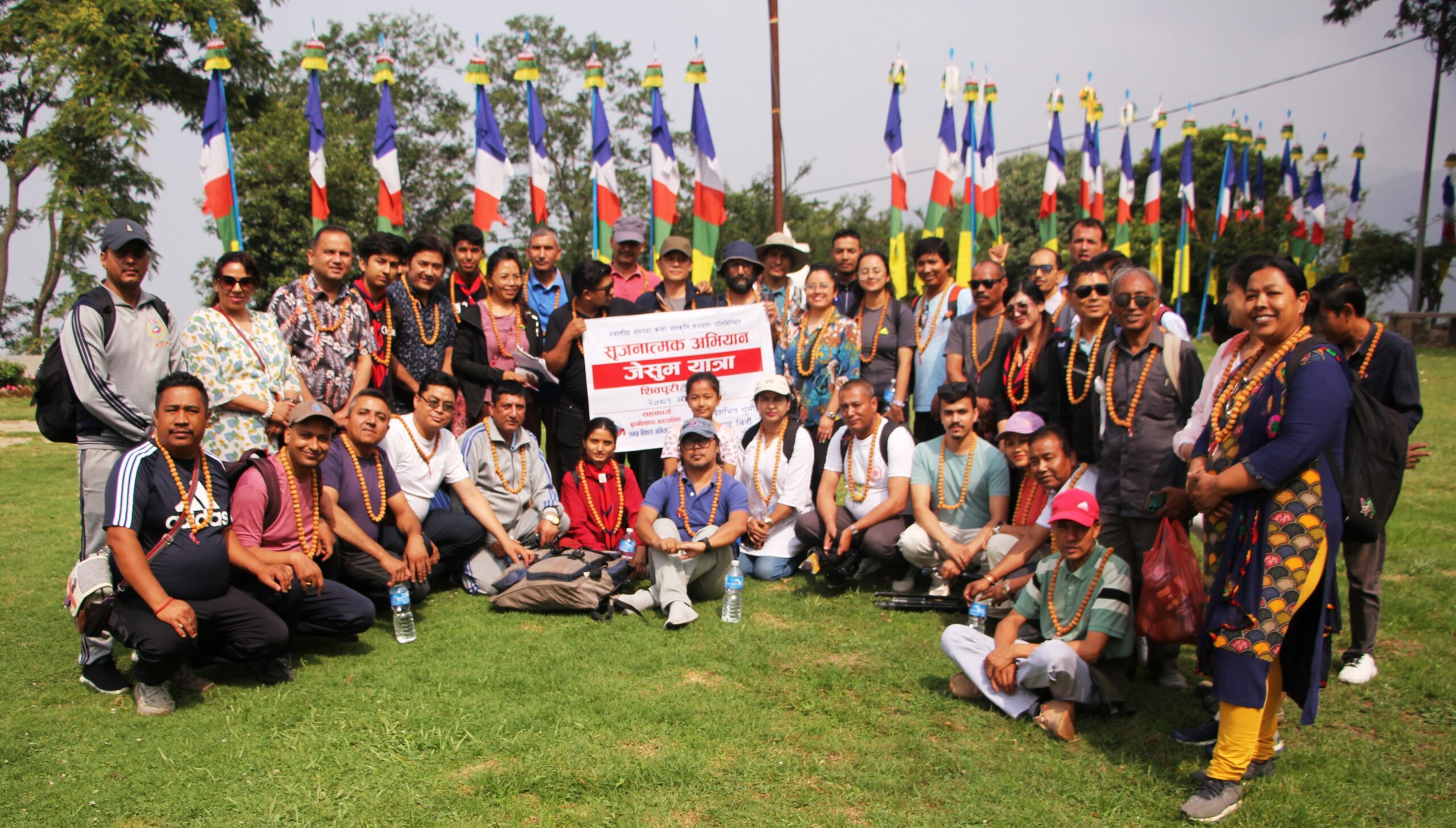 काठमाडौँ – ‘देशभित्र घुमौँ, देशलाई चिनौँ’ भन्ने मुल नाराका साथ ‘जेसुम यात्रा’ सम्मन्न भएको छ । शनिबार बुढानिलकण्ठबाट शिवपुरी डाडाँ सम्म पुगेर यात्रा सम्पन्न भएको हो । बुढानिलकण्ठ नगरपालिका र समग्र विकास अभियान नेपालको सहकार्यमा गरिएको ‘जेसुम यात्रा’ मा लेखक, साहित्यकार, राजनीतिज्ञ, चित्रकार, रङ्गकर्मी, पत्रकार लगायतको सहभागिता रहेको थियो ।