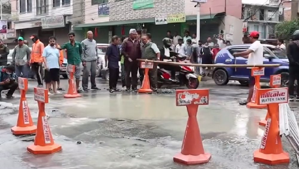 काठमाडौं । काठमाडौंको सोह्रखुट्टेमा सडक भासिएको छ । बुधबार बिहान करिब ५: ३० बजे ठुलो आवाजका साथ सडक भासिएर पानी निस्किएको छ ।