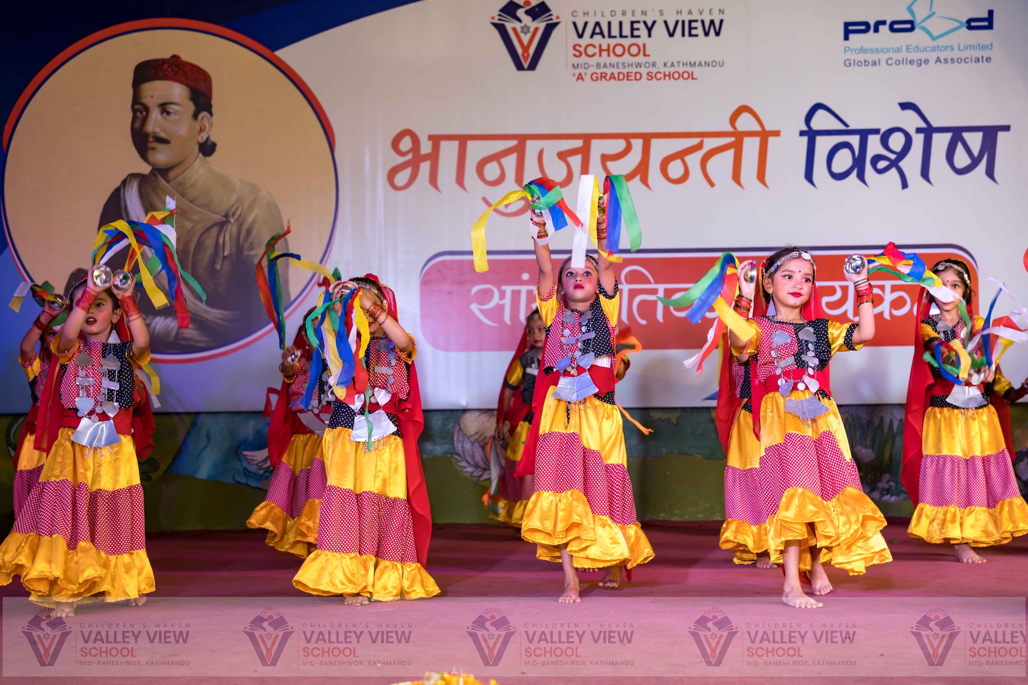 काठमाडौं – काठमाडौंको मध्यबानेश्वरमा रहेको भ्याली भ्यु स्कुलमा कविता वाचन र कविता प्रतियोगिता गरी भानुजयन्ती मनाइएको छ। २११औं भानुजयन्तीका अवसरमा सत्रौं उपत्यकाव्यापी अन्तरमाध्यमिक विद्यालयस्तरीय कविता प्रतियोगितालगायत गतिविधि गरी विद्यालयले भानुजयन्ती मनाएको हो।
