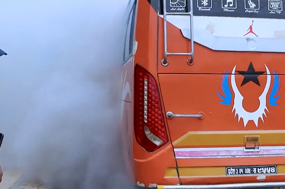 काठमाडौँ । नयाँ बानेश्वर चोकमा गुडिरहेको बसबाट धुवाँको मुस्लो निस्केको छ ।