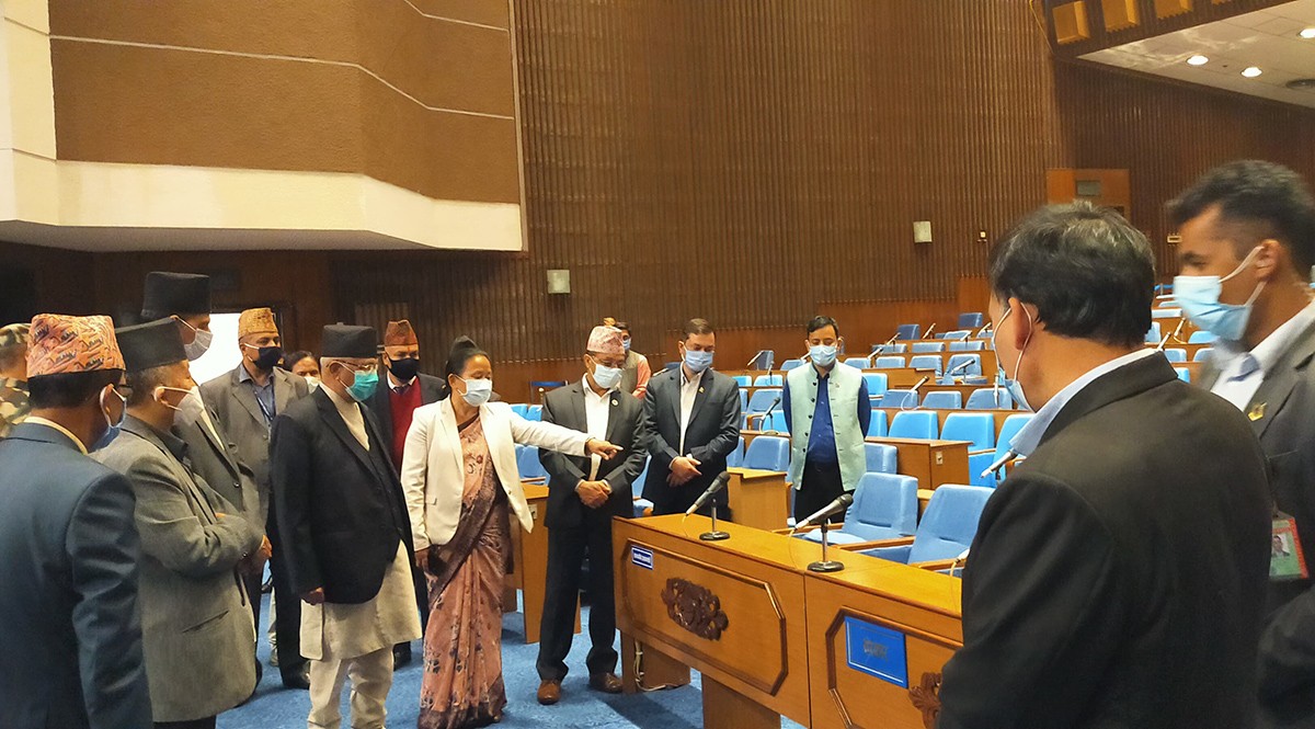 काठमाडौं – प्रधानमन्त्री केपी शर्मा ओलीले बुधबार नयाँ बानेश्वरस्थित संसद भवनको बैठक कक्षको अवलोकन गरेका छन् ।