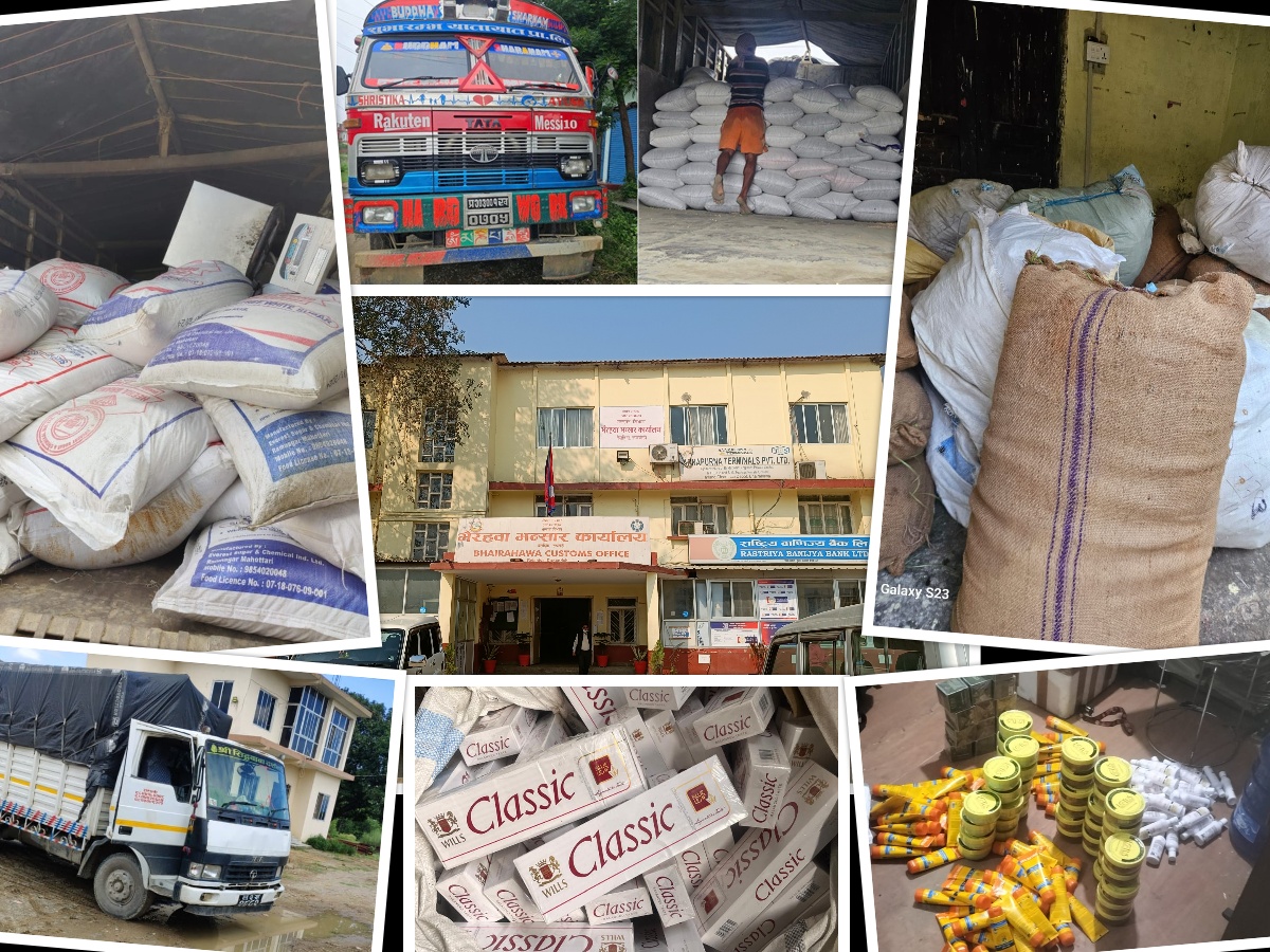 भैरहवा भन्सार कार्यालयले पछिल्लो एक वर्षमा नेपाल भित्रिएको करोडौ मुल्य बराबरको अवैध सामान बरामद गरेको छ । यस अघि गत जेठ २९ मा भैरहवा भन्सार कार्यालयले लु १ च ४७९२ नम्बरको पिकअप गाडी नियन्त्रणमा लिई अवैधरुपमा भित्र्याइएको १७ लाख बढीको बेल्ट, ब्रा र मोजा बरामद गरेको थिया, गाडी जफत गरि चालक अब्दुल अन्सारी अहिले थुनामा छन् ।