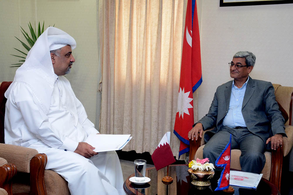 काठमाडौँ -गृहमन्त्री रमेश लेखकसंग नेपालका लागि कतारका राजदूत महामहिम मिसाल बिन मोहम्मद अल अन्सारीले शिष्टाचार भेटघाट गरेका छन् ।