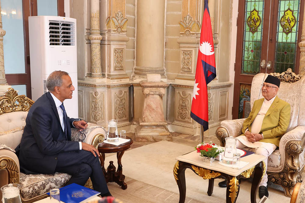 काठमाडौँ । प्रधामन्त्री केपी शर्मा ओली र संयुक्त राज्य अमेरिकाका व्यवस्थापन तथा श्रोतसम्बन्धी उप–विदेशमन्त्री रिचार्ड वर्माबीच भेटवार्ता भएको छ ।