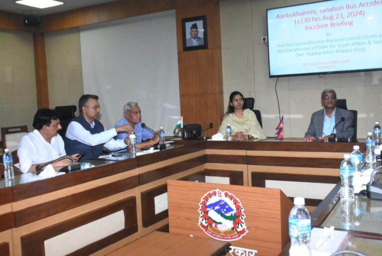 शनिबार गृहमन्त्रालयमा उनीहरुबीच भेटवार्ता भएको हो । शुक्रबार पृथ्वीराजमार्गअन्तर्गत तनहुँको आँबुखैरेनी गाउँपालिका–२ ऐना पहराबाट भारतीय बस मर्स्याङ्दी नदीमा खसेपछि भएका घाइतेको अवस्था बुझ्न काठमाडौँ आएकी भारतीय राज्यमन्त्री खडसे गृहमन्त्रालय पुगेर गृहमन्त्री लेखकसँग भेटवार्ता गरेकी हुन् ।