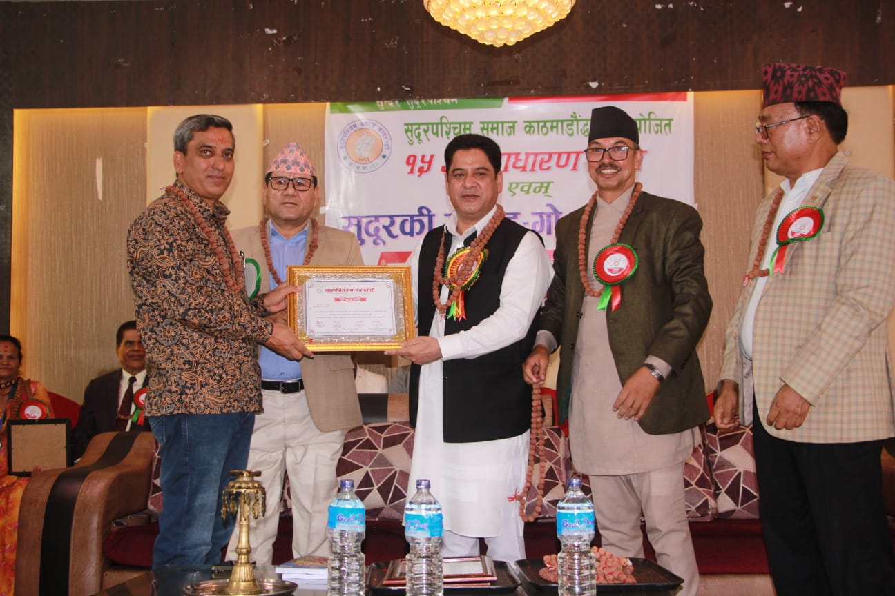 कार्यक्रममा विभिन्न क्षेत्रमा योगदान पु¥याएका व्यक्तिहरुलाई सम्मान गर्नुका साथै विभिन्न पदमा आसिन व्यक्तिहरुलाई बधाई तथा प्रशंसा पत्रले सम्मान समेत गरिएको थियो । जसमा नेपाल सरकारका सचिव डा. राजेन्द्रप्रसाद मिश्रलाई समेत सम्मान गरेको छ । यस्तै बरिष्ठ साहित्यकार डा. दामोदर पुडासैनी ‘किशोर’, सहसचिव गणेशदत्त भट्ट, सहसचिव जनकराज जोशी, डा. कुष्माकर भट्ट लगायत सञ्चारकर्मीहरुलाई सम्मान गरेको थियो । यस्तै कार्यक्रममा आजिवन सदस्यता लिने व्यक्तिहरुलाई समेत प्रमाणपत्रले सम्मान गरेको सुदूरपश्चिम समाज काठमाडौँका उपाध्यक्ष ई. रामदत्त पन्तले जानकारी दिनुभयो ।