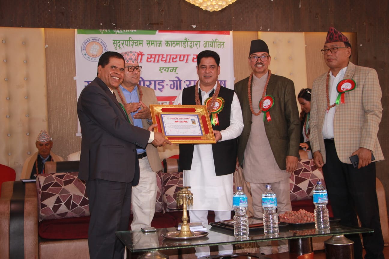 काठमाडौँ – सुदूरपश्चिम समाज काठमाडौँको १५ औँ साधारण सभा सम्पन्न भएको छ । यसैगरी आजै सुदूरकी सोराई गोःरा विशेष पुस्तक समेत विमोचन गरिएको छ । समाजका अध्यक्ष लाल बहादुर बोहराको अध्यक्षता तथा उद्योग वाणिज्य तथा आपूर्ति मन्त्री दामोदर भण्डारीको प्रमुख आतिथ्यतामा काठमाडौँको कोटेश्वर, महादेवस्थानमा आयोजित एक कार्यक्रमका विच साधारण सभा तथा पुस्तक विमोचन गरिएको हो ।