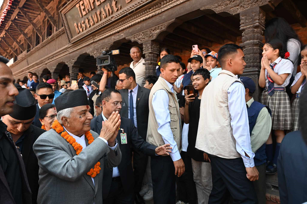 काठमाडौं । राष्ट्रपति रामचन्द्र पौडेल सार्वजनिक स्थलमा पुग्ने ‘सार्वजानिक स्थलमा राष्ट्रपति’ भन्ने कार्यक्रम अन्तर्गत शुक्रवार पहिलो दिन भक्तपुर दरवार स्क्वायरको पुगेका छन् ।