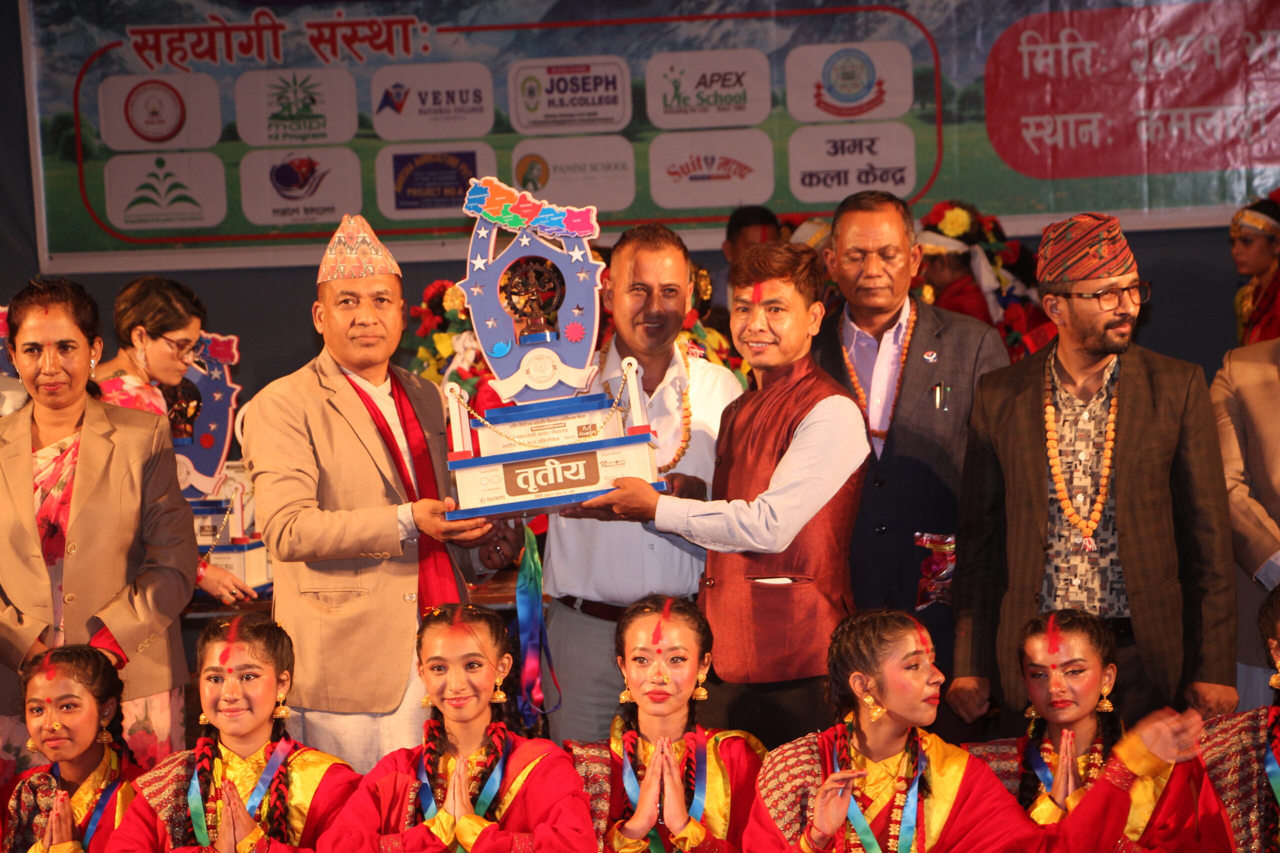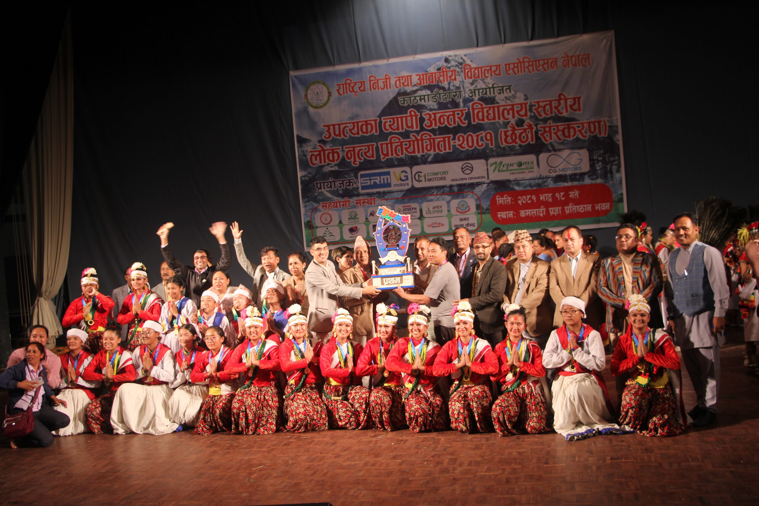 प्रतियोगितामा प्रथम, द्वितीय र तृतीय हुने प्रतियोगी विद्यालयले क्रमशः रु.२५,०००/–, रु. २०,०००/– र रु.१५,०००/– का दरले नगद पुरस्कारका साथमा प्रमाणपत्र तथा ट्रफी प्रदान प्राप्त गरेका छन् । साथै चौथोदेखि दसौं स्थानसम्मको नृत्यलाई ट्रफी र प्रमाणपत्र प्रदान गरिनुका साथै, सर्वोत्कृष्ट भेषभुषा, सर्वोत्कृष्ट नृत्य निर्देशकलाई पनि प्रमाणपत्र र ट्रफी प्रदान गरिएको छ । प्रतियोगितामा सहभागी विद्यालय र सहभागी सम्पूर्ण विद्यार्थीहरुलाई प्रमाणपत्र प्रदान गरिएको छ ।