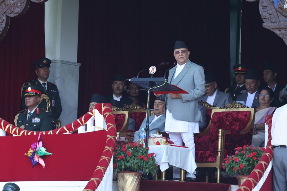 संविधान दिवस तथा राष्ट्रिय दिवस, २०८१ का अवसरमा मूल समारोह समितिले आज सैनिक मञ्च टुँडिखेलमा आयोजना गरेको कार्यक्रममा सम्बोधन गर्दै प्रधानमन्त्री ओलीले संविधानलाई समयानुकूल बनाउँदै अमिल्दा विषय र राजनीतिक तहमा देखिएको अस्थिरताको केही हदसम्म सम्बोधन संविधान संशोधनले गर्ने विश्वास व्यक्त गरे ।