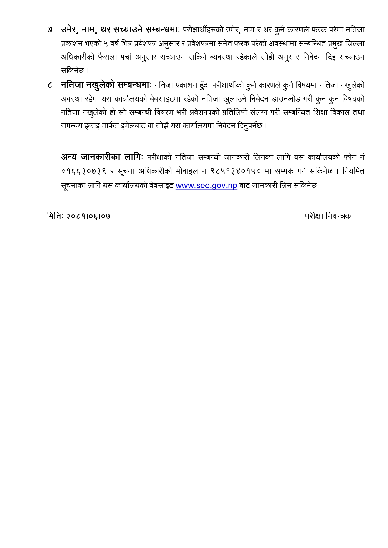 एसईईमा बोर्डले लेटर ग्रेडिङ निर्देशिका २०७८ (संशोधनसहित) लागू गरेको थियो। निर्देशिकाअनुसार परीक्षार्थीले बाह्य सैद्धान्तिक परीक्षामा ३५ प्रतिशत र आन्तरिक मूल्याङ्कनमा ४० प्रतिशत अंक प्राप्त गर्नुपर्ने हुन्छ।